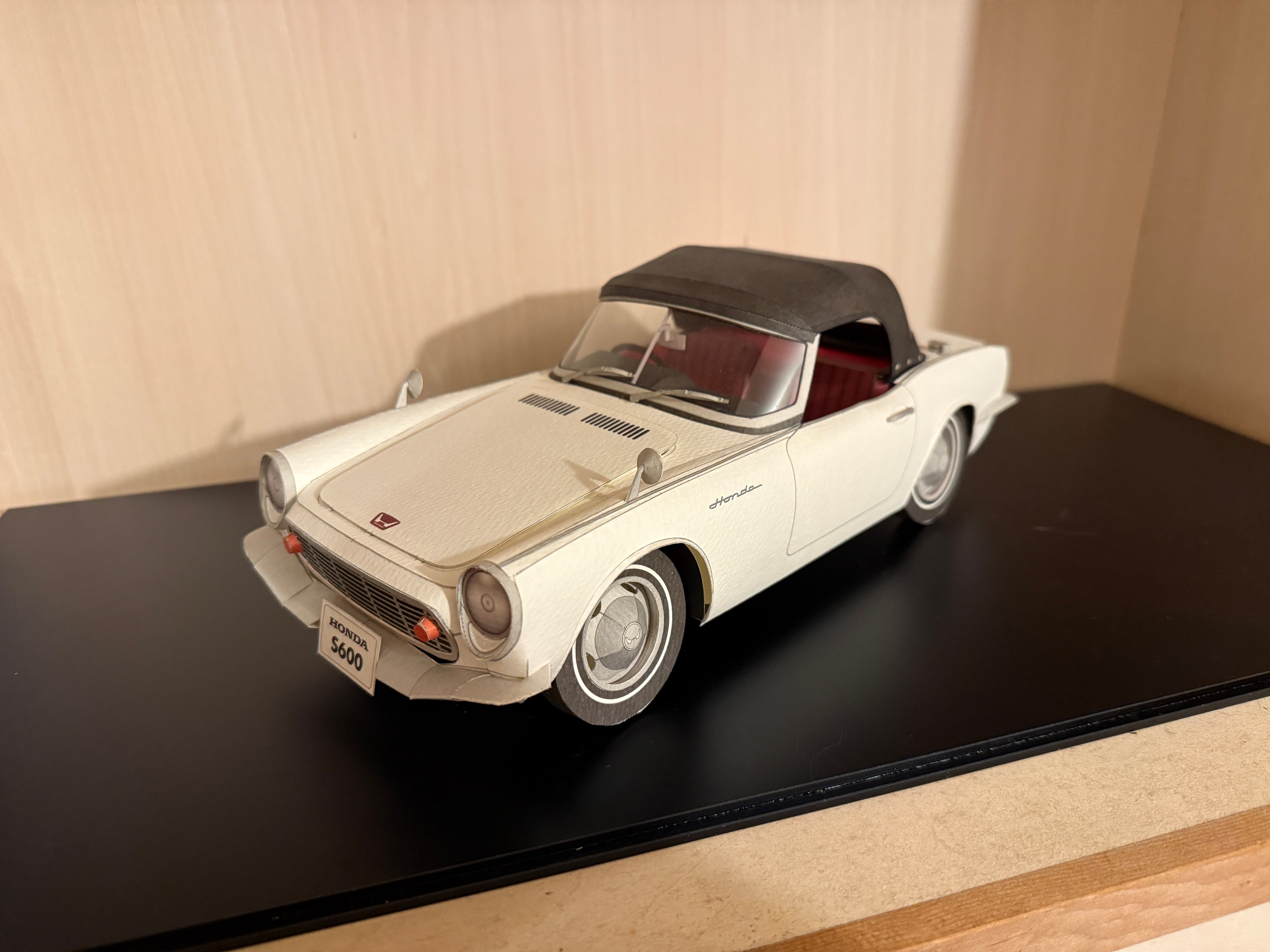 アップリフトのHONDA S600の完成品です。 カードモデルのYouTubeチャンネル「ヌイダタカシの動画」で製作された1点ものの完成品です。
