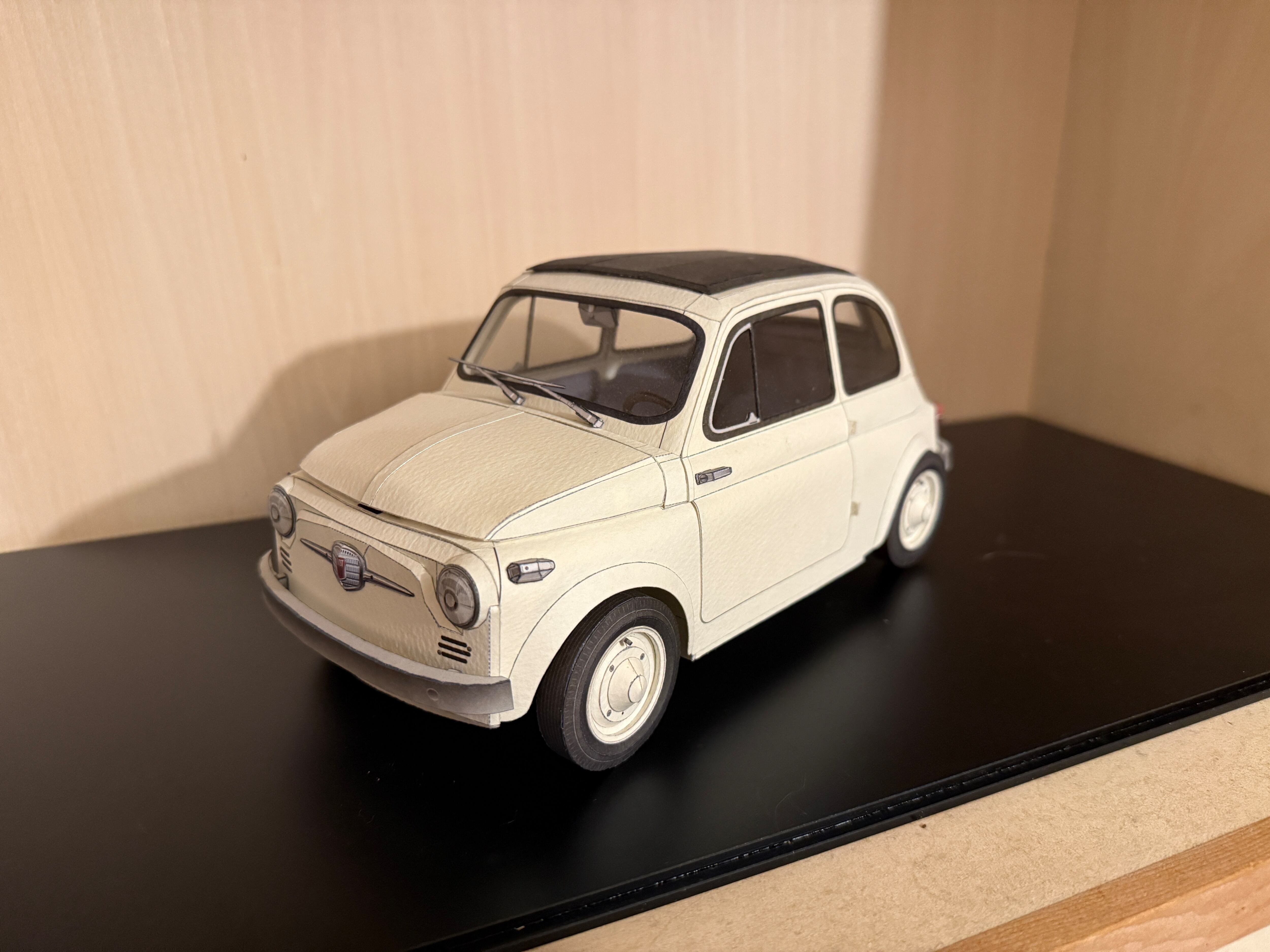 アップリフトのFIAT500の完成品です。 カードモデルのYouTubeチャンネル「ヌイダタカシの動画」で製作された1点ものの完成品です。